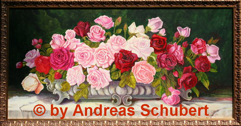 This painting I painted in a Lasur technique. 10 to 13 delicate layers in acrylic colors got each rose. So it looks natural and delicate.